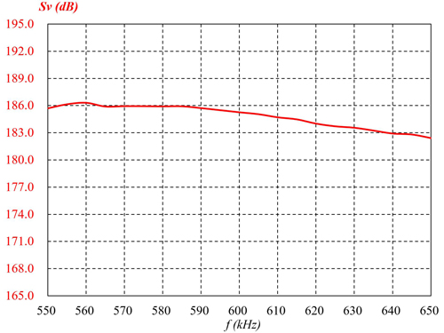TVR(array) @ fᵥ: 185 dB re 1 μPa•m/V